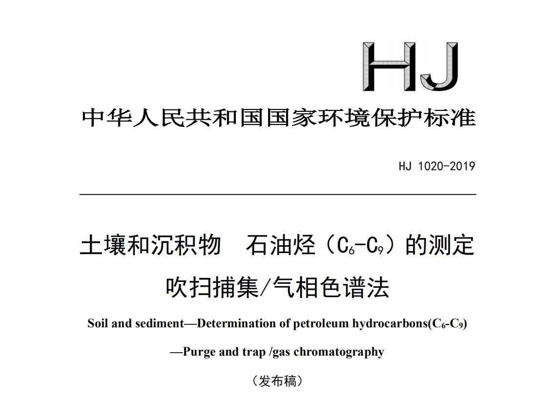 HJ 1020-2019 土壤和沉積物 石油烴(C6-C9)的測定 吹掃捕集氣相色譜法 HJ1020-2019土壤和沉積物石油烴(C6-C9)的測定吹掃捕集/氣相色譜法 本標(biāo)準(zhǔn)規(guī)定了測... 更新日期:2020-05-06 下載包(1)