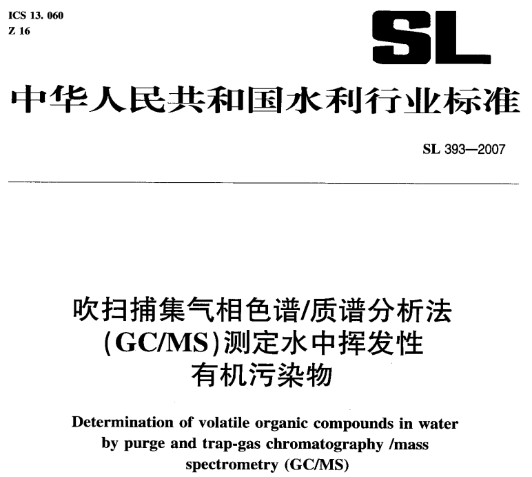 SL 393-2007 吹掃捕集氣相色譜-質(zhì)譜分析法(GC-MS)測定水中揮發(fā)性有機污染物 SL 393-2007 吹掃捕集氣相色譜-質(zhì)譜分析法(GC-MS)測定水中揮發(fā)性有機污染物本標(biāo)準(zhǔn)適用... 更新日期:2020-05-06 下載包(1)