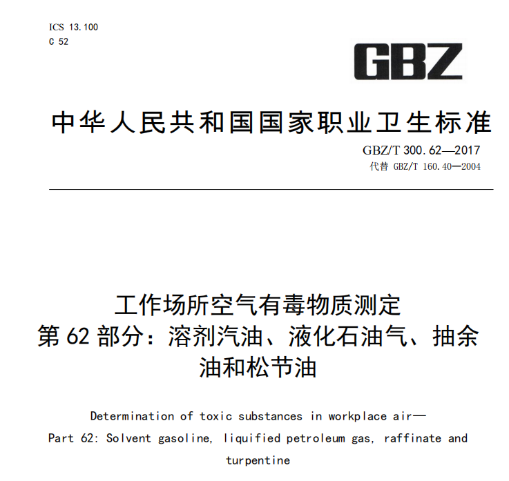 GBZ/T 300.62-2017 工作場所空氣有毒物質測定 第62部分:溶劑汽油、液化石油氣、抽余油和松節(jié)油 GBZ/T300.62-2017工作場所空氣有毒物質測定第62部分:溶劑汽油、液化石油氣、抽余油和... 更新日期:2020-05-11 下載包(1)