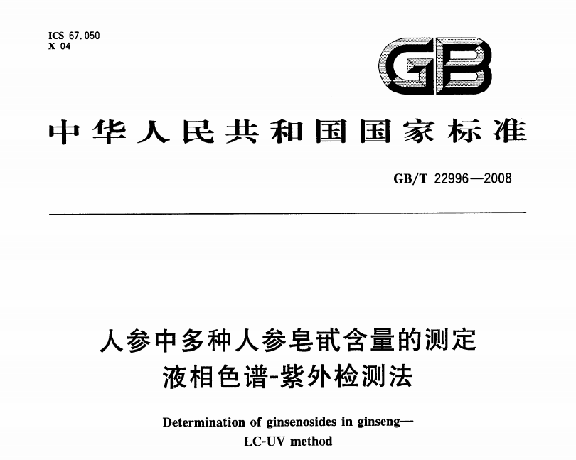 GBT 22996-2008 人參中多種人參皂甙含量的測定 液相色譜-紫外檢測法 更新日期:2023-01-03 下載包(1)
