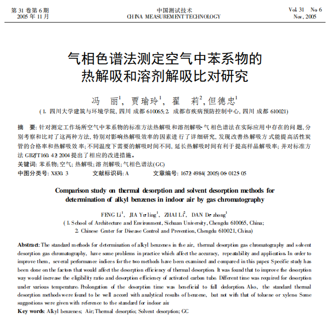 氣相色譜法測(cè)定空氣中苯系物的 熱解吸和溶劑解吸比對(duì)研究 氣相色譜法測(cè)定空氣中苯系物的 熱解吸和溶劑解吸比對(duì)研究 馮 麗1 , 賈瑜玲1 , 翟 莉... 更新日期:2020-08-11 下載包(1)