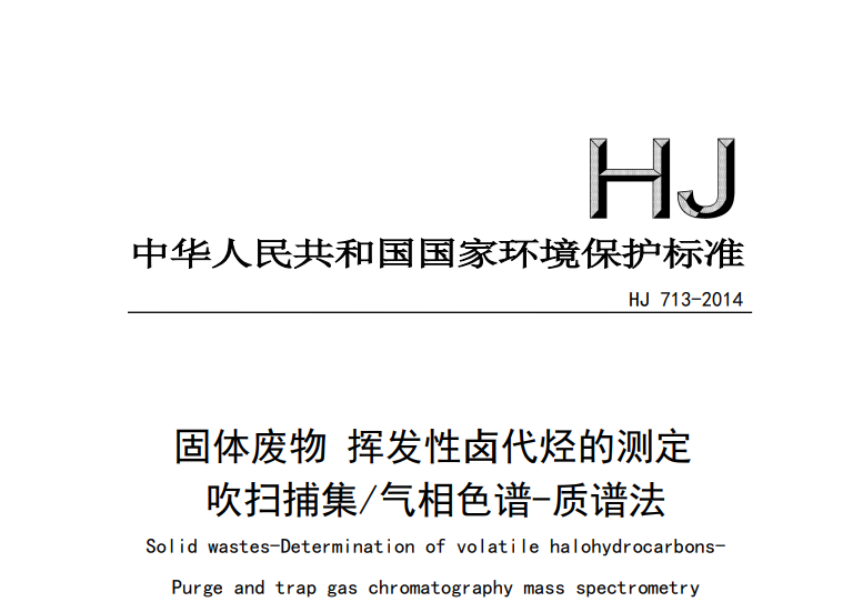 HJ 713-2014 固體廢物 揮發(fā)性鹵代烴的測定 吹掃捕集氣相色譜-質(zhì)譜法 HJ 713-2014 固體廢物 揮發(fā)性鹵代烴的測定 吹掃捕集氣相色譜-質(zhì)譜法 更新日期:2020-03-19 下載包(1)