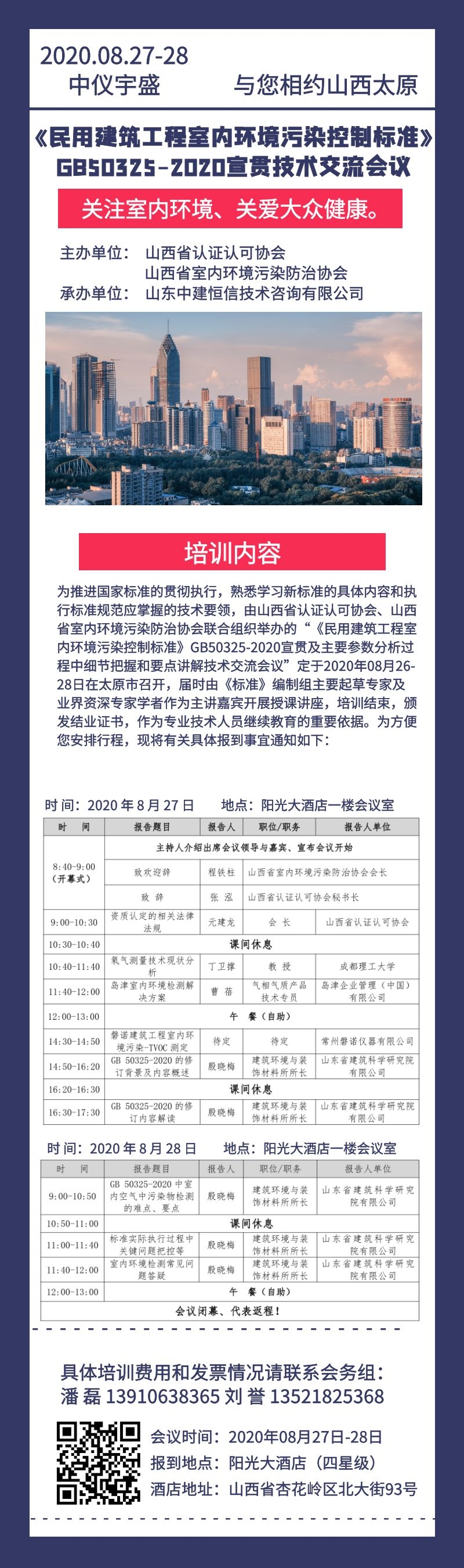 關(guān)注室內(nèi)環(huán)境、關(guān)愛大眾健康。相約太原!《民用建筑工程室內(nèi)環(huán)境污染控制標(biāo)準(zhǔn)》GB50325-2020宣貫技術(shù)交流會議 更新日期:2020-08-26